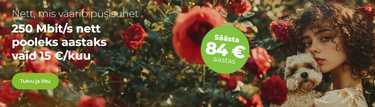 – koduinternet 250 Mbit/s soodushinnaga 15 €/kuu 6 kuuks (tavahind on 29 €/kuu);