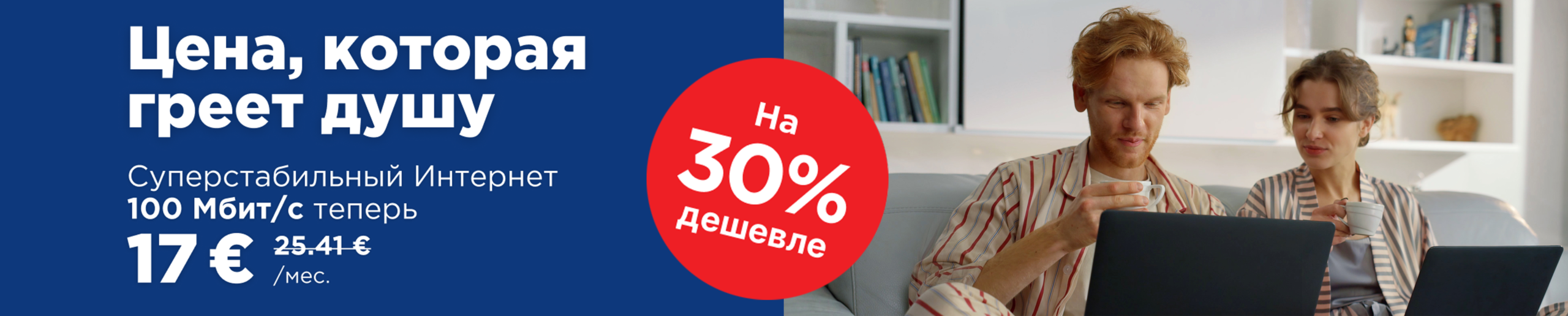 – интернет соединение “Скорость 25/25 Мбит/с” по льготной цене 13,00 € в месяц (обычная цена – 17 €),