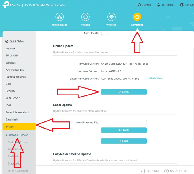 Kui menüüs puudub vastav valik, vajutage ruuteri jaoks saada olevate uuenduste otsimiseks CHECK FOR UPGRADES. Uuenduste leidmisel installige nende kõige uuem versioon.